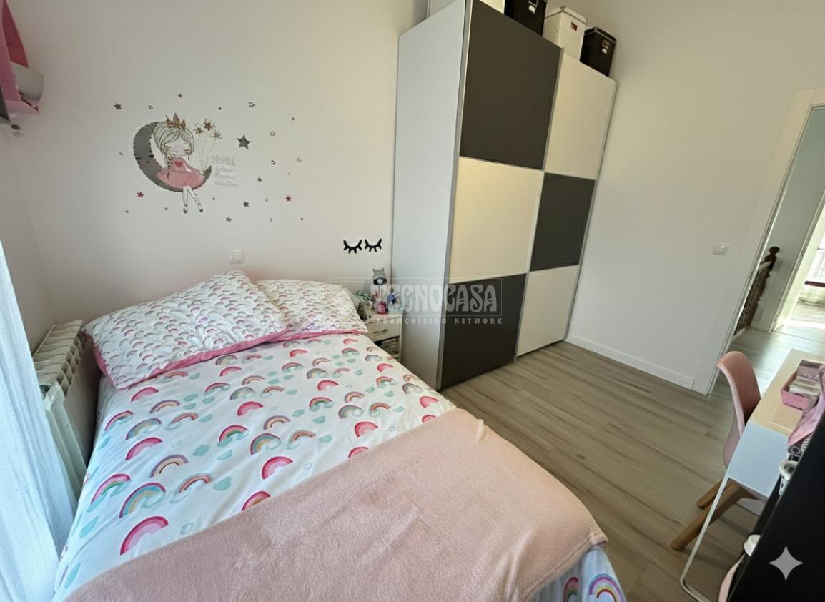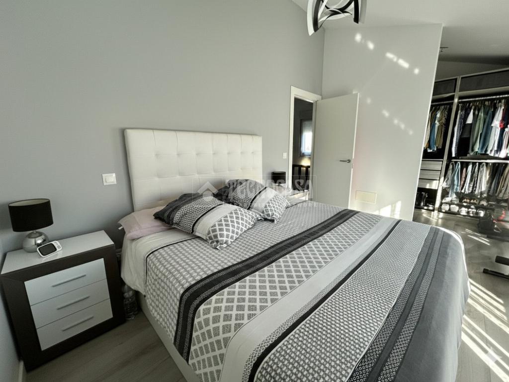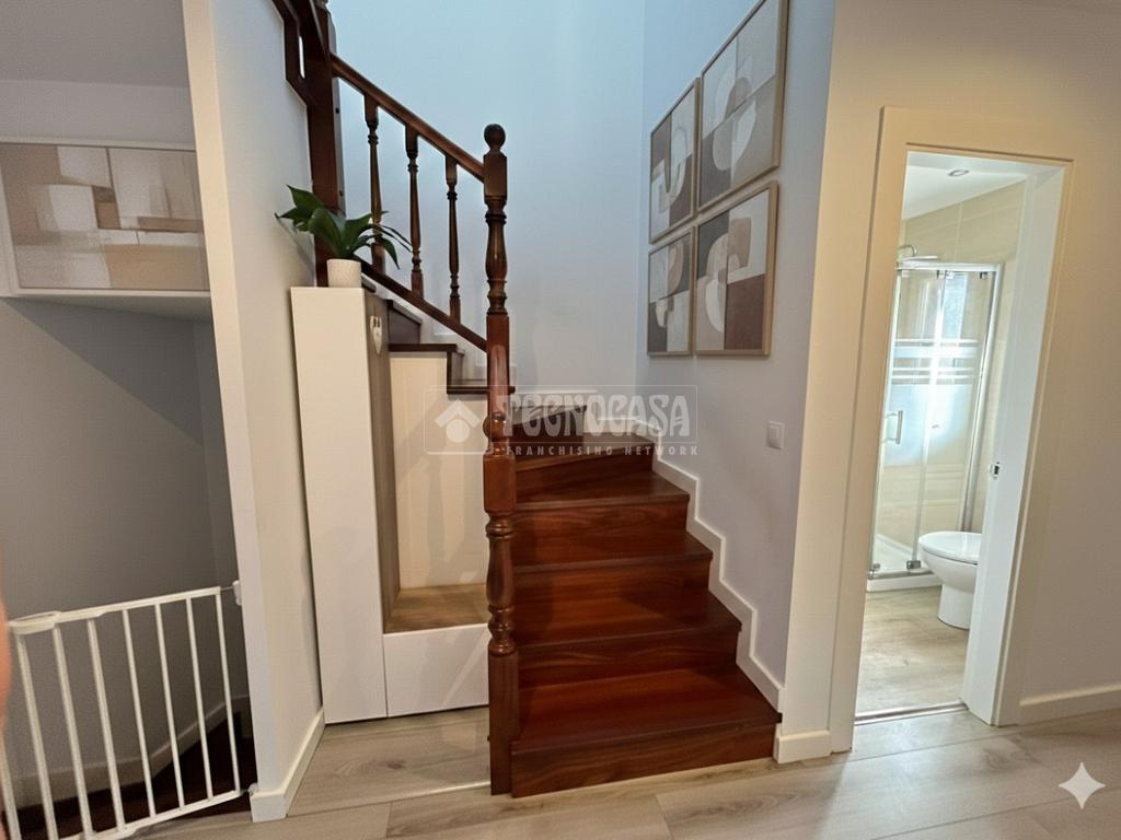 La vivienda, al ser esquinera y estar adosada únicamente por un lateral, destaca por su gran independencia, privacidad y luminosidad. Se distribuye en una planta principal de 63 metros cuadrados y una planta superior de 61 metros cuadrados, dentro de una urbanización muy tranquila con vistas despejadas. El interior fue reformado íntegramente hace ocho años con materiales de alta calidad, incluyendo una cocina moderna con electrodomésticos de primeras marcas, calefacción individual y ventanas climalit oscilobatientes con mosquiteras en todas las estancias para un aislamiento total. Dispone de tres dormitorios (dos de ellos conectados por una terraza corrida) y dos baños, de los cuales el de la planta baja ha sido totalmente actualizado y el de la planta superior cuenta con mampara nueva.